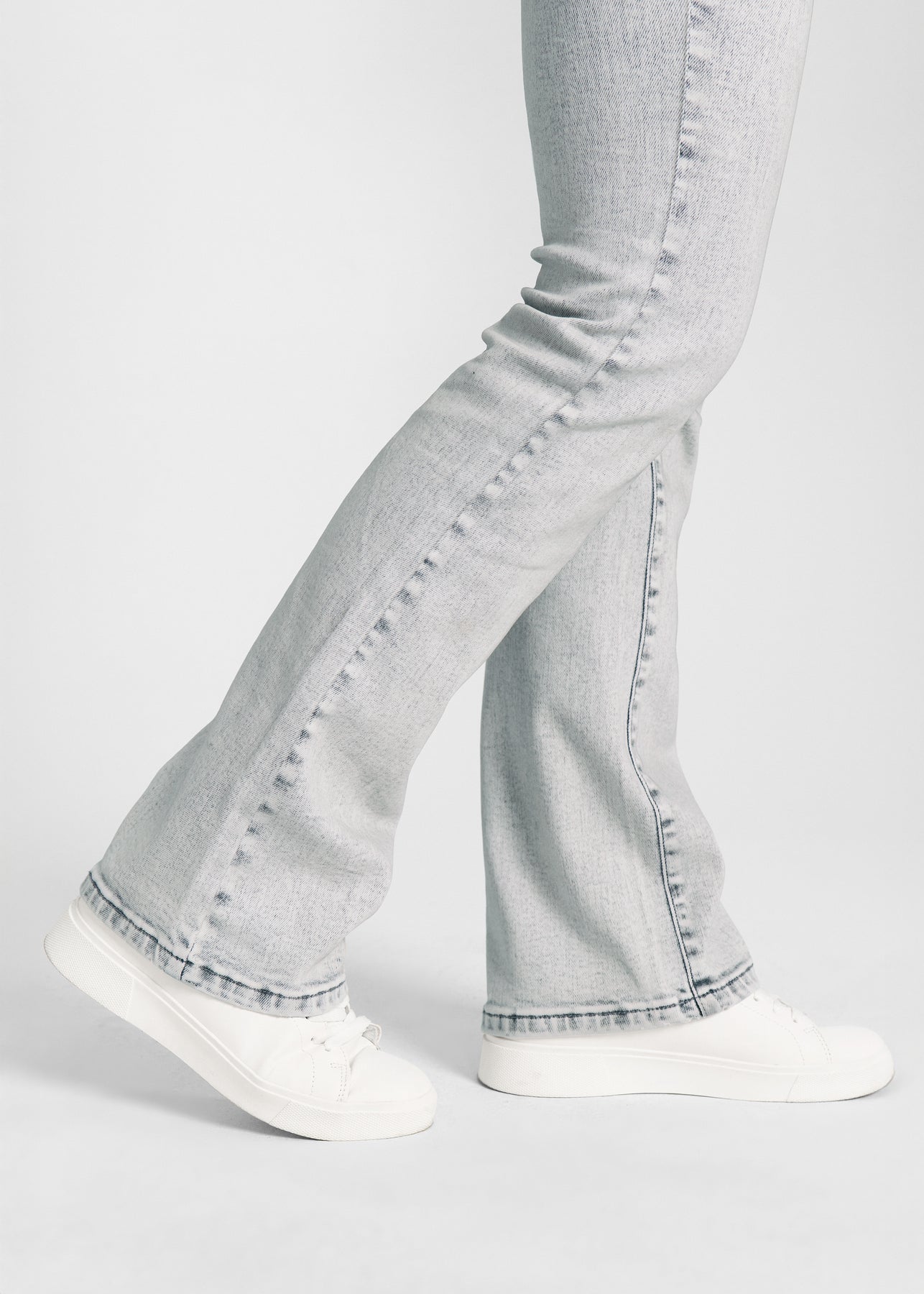 Mit Perfect Jeans - Bootcut - Ashes bekommst du die perfekten hellgrauen Jeans für Damen in einem schönen Denim-Look. Wir haben Denim auf eine neue Weise entwickelt – mit viel Stretch und Komfort, damit du Jeans erhältst, die sich genauso gut anfühlen, wie sie aussehen. Der Bootcut-Schnitt liegt eng an Taille, Hüften und Oberschenkeln an und weitet sich leicht ab dem Knie, was für eine schmeichelhafte und stilvolle Silhouette sorgt. Die Jeans sind hoch tailliert und verfügen über zwei Taschen vorne und hinten. Sie sind aus einem speziellen Gewebe gefertigt, das sowohl die Farbe als auch die Passform der Jeans selbst nach vielen Wäschen und Tragen bewahrt. Diese hellgrauen Bootcut-Jeans für Damen sind die perfekte Wahl – sowohl für den Alltag als auch für besondere Anlässe.