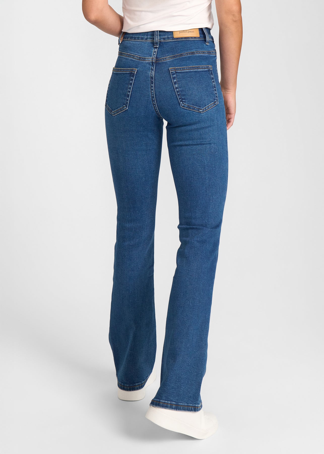 Perfect Jeans - Bootcut - Oceans sind dunkelblaue Jeans, die einen klaren und raffinierten Denim-Look bieten. Die Jeans passen sich dem Körper an, mit einer engen Passform an Hüfte und Oberschenkeln und dem charakteristischen Schlag vom Knie abwärts. Das Material ist weich, flexibel und sehr dehnbar, sodass du im Alltag maximalen Komfort genießt, ohne dass die Jeans im Laufe der Zeit ihre Form oder Farbe verliert. Diese Bootcut-Jeans sind hoch tailliert und verfügen über Taschen vorne und hinten. Eine sichere Wahl für alle, die einen zeitlosen Denim-Look lieben.