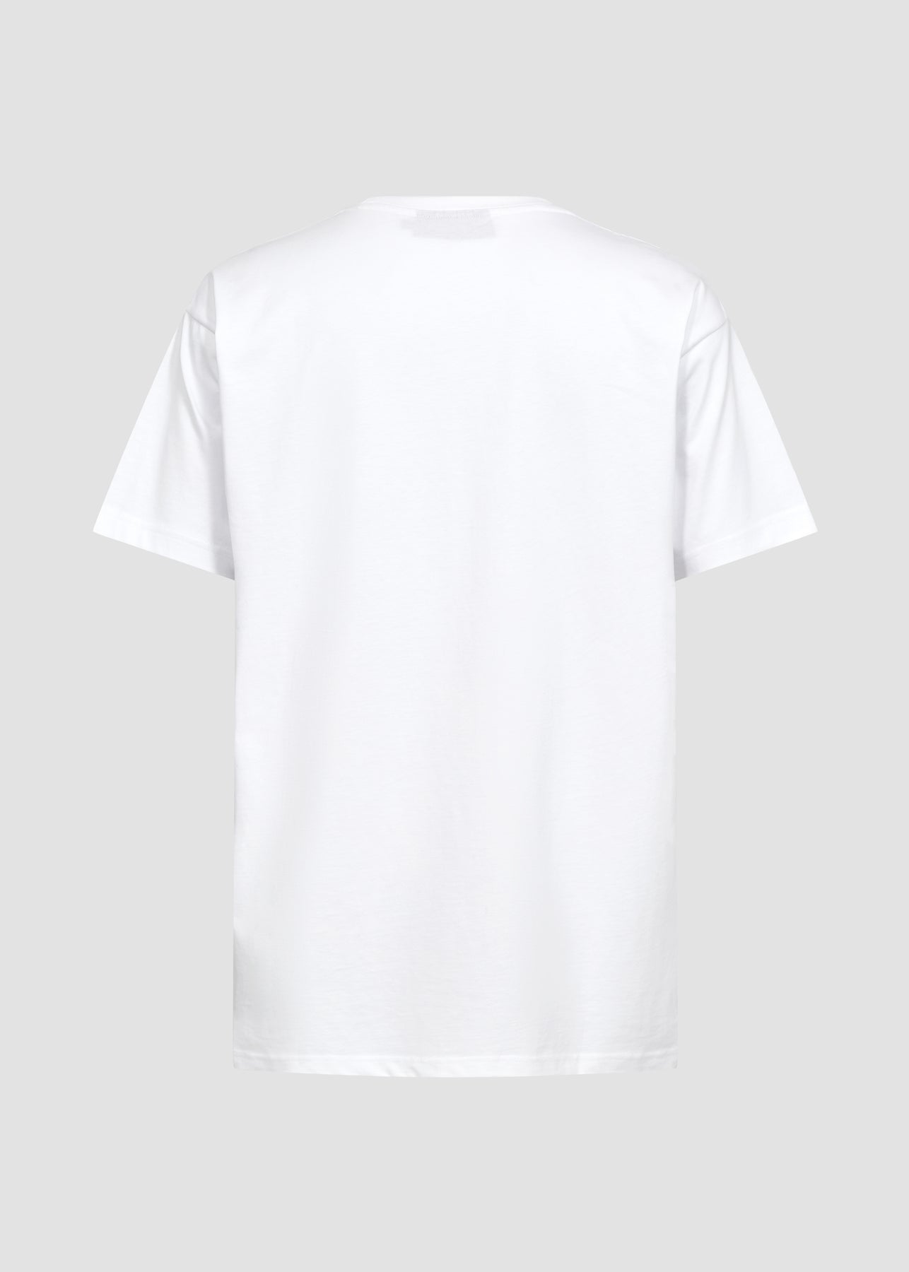 Perfect T-shirt – Marguerites is a white T-shirt with a minimalist and versatile design, featuring a round neckline. The black Perfect Jeans logo printed on the front adds contrast and character without overpowering the clean look. It is made of 100% cotton, ensuring a light and comfortable feel throughout the day. With its relaxed fit, it is ideal for your everyday wear.