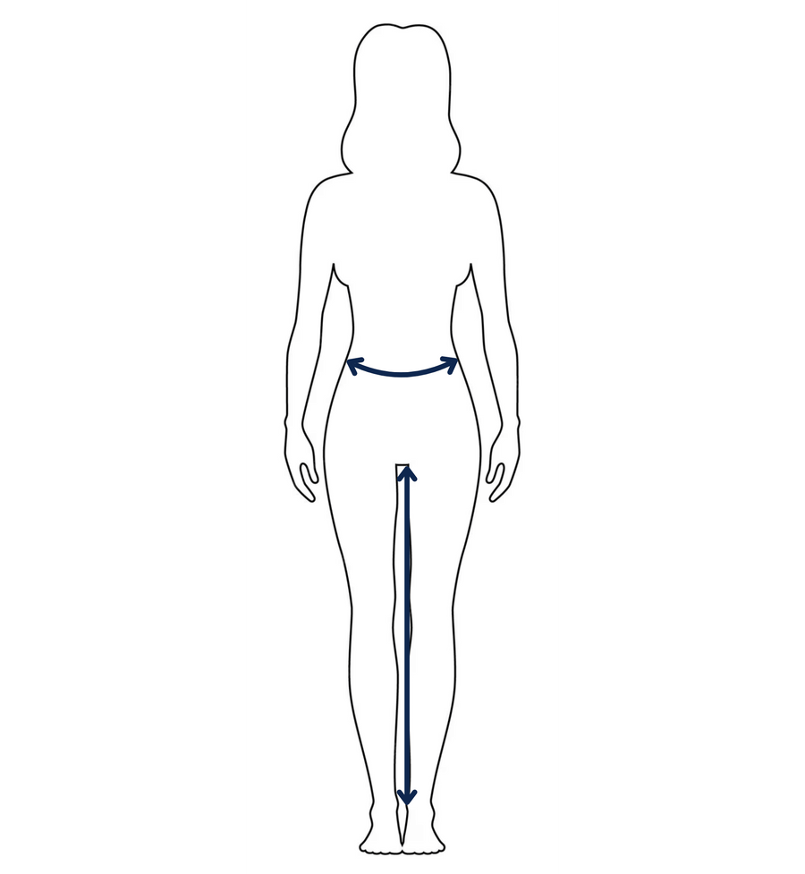 Wir empfehlen, dass Sie unseren Größenratgeber verwenden, da er speziell auf unsere Produkte zugeschnitten ist. Um Ihre richtige Größe zu finden, messen Sie bitte Ihre Taille, wie auf dem Bild gezeigt. Liegen Sie zwischen zwei Größen, empfehlen wir, die kleinere zu wählen, da unsere Materialien sehr dehnbar sind. Um die richtige Länge zu finden, messen Sie vom Schritt bis zum Knöchel. Sie können dieselbe Längentabelle für alle unsere Jeansmodelle verwenden.